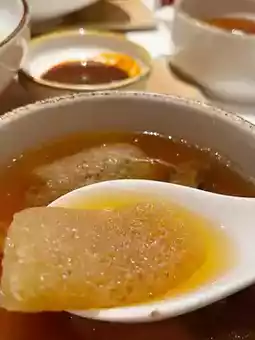 The black garlic soup brings rich freshness, the mushroom and bamboo shoots bring chewiness, the soup is more sweet.