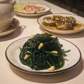 The spinach is tender green with a hint of ginger, and the pine nuts add a crispy taste. It is a refreshing cool snack😌