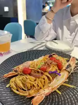 Garlic Sliced Olive Oil Pepper Red Prawn Spaghetti ($188): More portions than expected! The linguine palate al dente, garlic flakes, olive oil and peppercorns, and already shelled red shrimp, delicious!