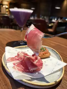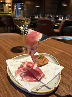 Spanish ham is not too salty and moderately fat and lean, which is perfect for pairing with white wine. Tomato buns are Juicy, crispy and appetizing.