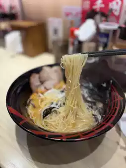 Secret pork bone soup soup, very rich taste, spicy lovers can add spicy; homemade daily 3mm noodles, noodles are thin but soft and smooth, strong soup absorption, with 2 slices of char siu, asparagus, spring onion, wood ear and seaweed.
