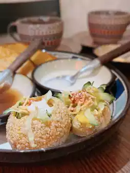 The Bangladeshi vegetarian crispy balls are basically a must-try item. Even when drizzled with refreshing yogurt sauce, the balls remain crispy, and the crunch is so satisfying 😙