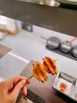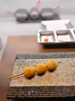 We also ordered the soy sauce grilled rice ball. The outside was slightly charred and fragrant, making my mouth water just by looking at it. The texture was excellent, with distinct grains of rice.