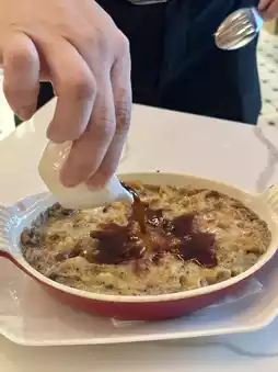 Next, for the main course, baked macaroni, with the staff pouring chicken broth on the spot. Each macaroni piece was soaked in the rich and captivating aroma of black truffle, very intense. The fresh fish dish of the day surely did not disappoint seafood lovers, very delightful.