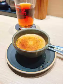 Miso French Omelette 🍮 Single order $48 💰Creamy Delicate 💯 Egg flavor is rich 🥚 with miso savory, plus the surface is thin and crispy caramel 🔥 Sweet and salty intertwined ☺️ There are also sweet potatoes and bean paste 🫘 at the bottom