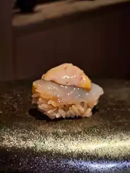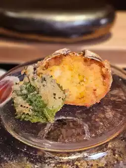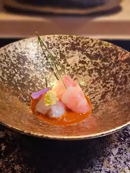 The meal begins with an appetizer of Nagano tomatoes and water octopus, refreshing and delightful. The Kyoto-style persimmon box paired with shrimp is uniquely flavorful and memorable. Following this are dishes like white squid with red sea urchin, Aomori Spanish mackerel, and Hokkaido Pacific saury, each showcasing the natural essence of the ingredients. The white-spotted prawn is prepared with shrimp paste, butter, and sweet sake, resulting in a rich and enticing flavor.