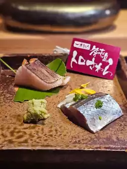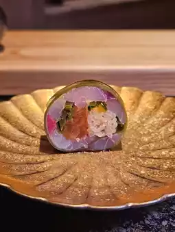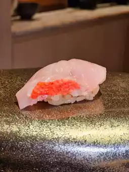 The sushi selection includes five varieties: golden eye snapper, Amakusa prawn, leatherjacket fish, striped beakfish, and sea urchin with tuna tartare and grilled matsutake mushrooms, all bursting with aroma and full of surprises. The sour kombu turtle fish offers a rich texture.
