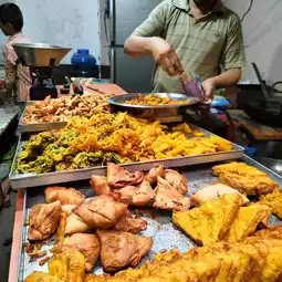 As you wander through the lanes, you'll also encounter vendors selling crispy snacks topped with tangy chutneys and spices. The and pani puri are crowd favorites, offering a burst of flavors in every bite.