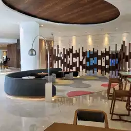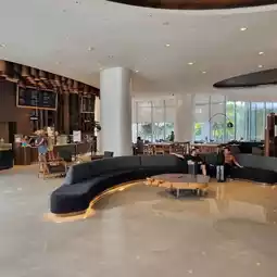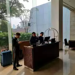 The DoubleTree by Hilton Hotel Jakarta - Diponegoro hotel's grand lobby is very open and well lit by direct sunlight. Many staff members were readily available to assist us in case we needed help with our luggage. The hotel's surroundings and design were really beautiful too.