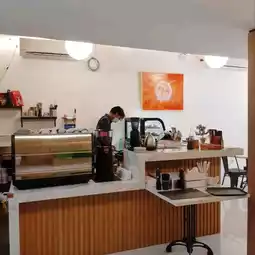 This place is located in the front side area of Graha YPPSDP. You go up the stairs and immediately encounter their outdoor seating area. Inside, there aren't as many seating options.