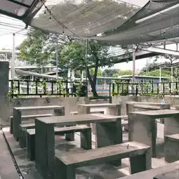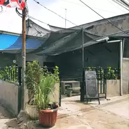 One of the coffee shops near a Transjakarta bus stop has an outdoor area upfront and an indoor area, though the indoor section tends to have a cigarette smell, so sitting outdoors is more pleasant.