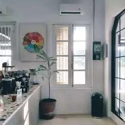 The outdoor seating area is in the front and beside the coffee shop. The atmosphere is lovely, especially in the late afternoon. I just stopped by for a takeaway. They have pastries, pancakes, waffles, and snacks that you can order by scanning the available barcode for the menu.