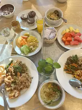 I was even more surprised because I thought with a price of 300k IDR, the food would be just average. But when I had breakfast, I found the food to be delicious! Although the variety wasn't extensive and it's not a 4-star hotel, the taste was really good, comparable to 4-star hotel food, and it suited my taste perfectly.