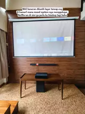 Review of the W Home Reserva Setiabudi Hotel. A mezzanine room with a projector is perfect for a staycation and watching movies with friends in the comfort of your room.