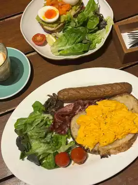 The menu is generous, offering everything from breakfast to lunch, brunch, coffee, and dinner.