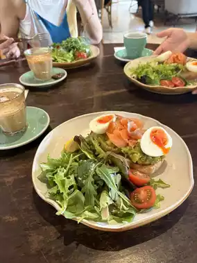 This stylish space is perfect for brunch with friends or a coffee break.