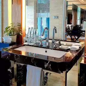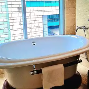 Major love : the king sized bed was huge ! Secondly, a mirror wall was placed so the room looks bigger and elegant, dont you just love it ! And what else ? A big bath tub in the bathroom ! Automatic toilet with bidet ! Quality toiletries !