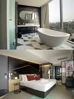 The hotel is like a beauty standing alone, quietly located in [specific location]. The surrounding area is quiet and serene, yet cleverly connected to the city's pulse. It is just the right distance from popular attractions and transportation hubs, allowing you to escape the hustle and bustle while conveniently exploring the city's mysteries.