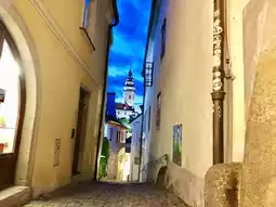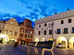 As the sun dips below the castle tower, the cobbled streets of Český Krumlov take on a magical calm. Beginning at the Fountain and Plague Column in the town square, your evening walk unfolds like a scene from a timeless story — golden lights reflecting off pastel facades, soft laughter echoing from nearby cafés, and musicians playing gentle tunes under the night sky.