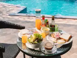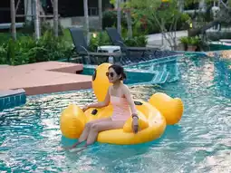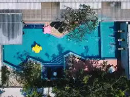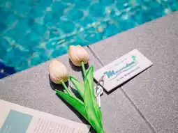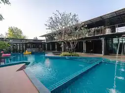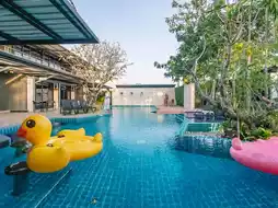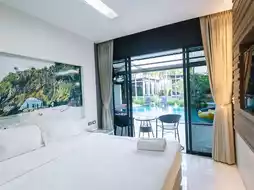 This place is Mawadee Island Cha-am. It is a pool villa resort in a modern loft style. There are rooms for 2 people that open the door to the pool💦 and rooms with private pools. But if you come with many people, there are also 2-bedroom and 3-bedroom pool villas. This location is only 500 meters from Cha-am beach. In the evening, you can go out and relax by the beach. And if you don't want to go anywhere, you can order food at the accommodation. There is a restaurant.