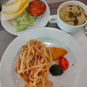 For breakfast, there are many choices. Thai, Western, moderate taste. Tea and coffee drinks are both hot and cold. There are both indoor and outdoor tables by the pool. The staffs are good and recommend various foods.
