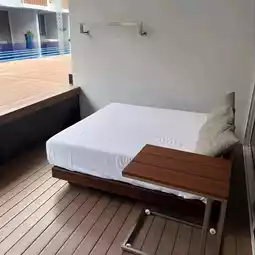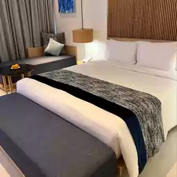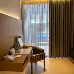 The rooms here are designed in a modern loft style. Inside the room, there are complete amenities, such as a mini bar, TV, refrigerator, and what you can't miss is the bright blue swimming pool, which is the highlight. It is located on the beach, with a clear view of the sea.