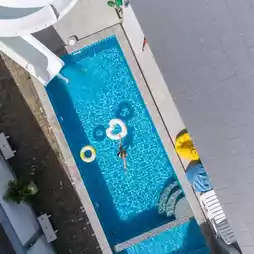 Especially the swimming pool, which is very clear, with colorful floats as props.
