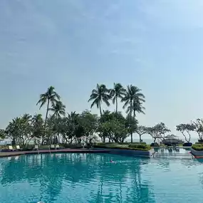 The Regent Cha-am Hua Hin Beach Resort is a long-standing beachfront accommodation in Cha-am. It was recently renovated in 2018. The hotel is located on Petchkasem Road. The entrance is opposite the Cha-am branch of Thai Watsadu. This is a large hotel with an area of over 50 rai. It has 442 rooms and 19 conference rooms. There is a large parking lot inside. Most importantly, there are 2 swimming pools and a small water park. The beach is sandy. It is perfect for a family vacation. Let's see what it's like inside.
