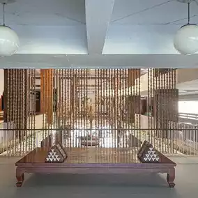 The lobby area is a large hall with many photo spots. It emphasizes wood and rattan. It is beautifully decorated. The hotel has plenty of seating to accommodate guests. This place is suitable for couples who come to relax and families who bring their children to play in the pool because there is a children's pool with a slide. Or if you want to organize a seminar, there is still a lot of room space.