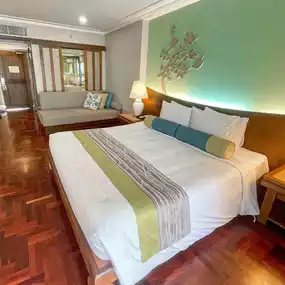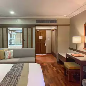 The room was much larger than I thought and the bed was soft and comfortable. The decoration was Thai style. The balcony was very wide and had a garden view. The bathroom area was clearly separated from the dry area. However, I was a little disappointed because there was no bidet.