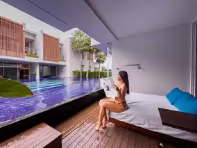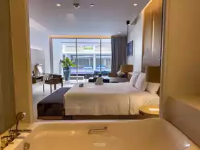 The room we stayed in was a Deluxe Pool Access room, which is a room next to the swimming pool. It comes with modern amenities and a bathtub. If you want to swim, you can walk down and play in the water. I really like it.