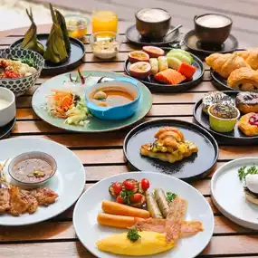 ๐ #Restaurant You can choose to eat Thai fusion food at ๐ช๐ต๐ถ๐๐ฒ ๐ข๐๐ฒ๐ป or Western-style food and a chill bar by the sea at ๐๐ฒ๐ฎ๐ฐ๐ต ๐ฆ๐ผ๐ฐ๐ถ๐ฒ๐๏ฟฝ The atmosphere is very good. Don't miss it. As for breakfast, there are many menus, including egg dishes, Thai food, fusion food, snacks, desserts.
