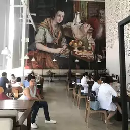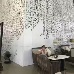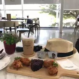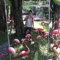 The area is divided into 3 zones: a restaurant zone, a coffee shop zone, a department store zone, and the lower part is a green garden zone with many trees, providing shade and relaxation. It is also decorated with flamingos and dinosaurs, as well as the entrance stairs. This corner is a place to sit and relax. Children can come and run around while waiting for their parents to shop.