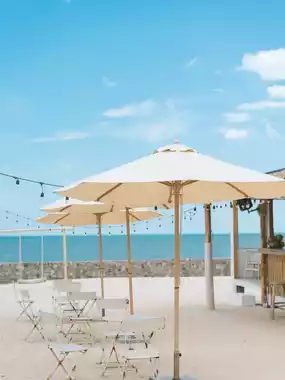 The cafe is located by the sea in Cha-am, Hua Hin 🏝 The atmosphere here is great. You can look out the window and see the beautiful sea. Sit and enjoy the sea breeze to refresh yourself. There are plenty of photo spots here, as well as food, drinks and bakery services.