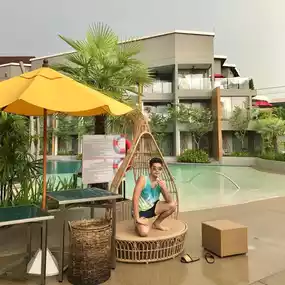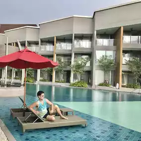 Actually located in Cha-am District, Phetchaburi Province, it's located at the very end of the tunnel leading into Hua Hin, just 2 kilometers away. This area offers a peaceful and private atmosphere, and it's not as crowded as the Cha-am beach area. Traveling from the hotel to both Cha-am and Hua Hin takes less than 10 minutes.