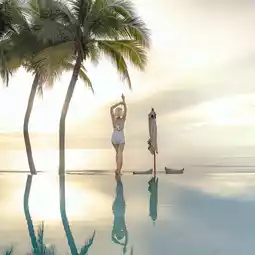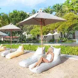 For this trip, we stayed in a Villa Access Pool room, a room directly next to the pool. Simply open the door and walk straight into the pool. The villa is beautifully decorated and incredibly pleasing to the eye. The spacious room features a large bathtub for a relaxing bubble bath. The bathroom also has a sunroof, perfect for soaking in the sunshine or gazing at the stars. There's also a large communal pool right on the beach with stunning sea views. It's the ultimate healing experience!