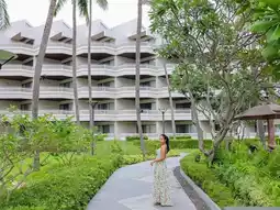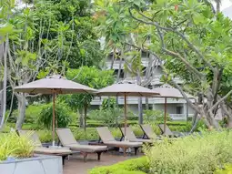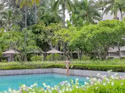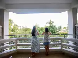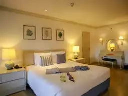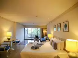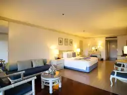 There is a sofa in the room. There is a balcony with a view of the garden and the swimming pool. On the balcony, there are chairs to sit and chill. Very relaxing. This accommodation zone is located inside, making it feel quiet and peaceful. It is very suitable for bringing the family to relax. It is also close to the kids club and the swimming pool with playground equipment for children. Families with children will definitely not like it.