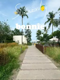 🍃This trip, Aom will take you to relax and chill by the sea in Cha-am. In a seaside accommodation, shady, the atmosphere is very chill. The hotel is spacious, making it feel airy and comfortable, not stuffy. There are gardens to sit and relax in both the hotel and the beach. There are 2 large swimming pools, a very chill seaside restaurant, a chic cafe that is fun to take pictures, and there is also an area for outdoor sports.