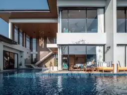#Pattaya Vann Hua Hin Resort is a luxury resort with comfortable and quiet rooms and villas. The 4-star Cha-am pool villa accommodation is 5 km from Cha-am Beach. There is a "Vann Pool Villa" room of 100 square meters. The interior is decorated in a modern tropical style. There are 2 bedrooms, 2 bathrooms, with a private pool. It can accommodate up to 4 people. It has complete facilities. There is a living room, a kitchen with an electric stove and a microwave. There is a seating area on the balcony. Along with other services in the accommodation, including free breakfast, a restaurant / bar, an outdoor pool, a local shuttle service, and meeting or event space.
