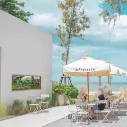 🌿 𝒃𝑶𝒏𝒏𝒊𝒆 𝒐𝒏 𝒕𝒉𝒆 𝒃𝒆𝒂𝒄𝒉 A very minimalist cafe decorated in white and brown tones, Korean feel, with large glass windows to see the sky and sea. There are also cute photo spots to make you feel happy.
