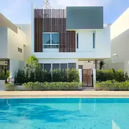 𝐕𝐞𝐫𝐚𝐧𝐝𝐚 𝐑𝐞𝐬𝐨𝐫𝐭 & 𝐕𝐢𝐥𝐥𝐚𝐬 𝐇𝐮𝐚 𝐇𝐢𝐧 𝐂𝐡𝐚 𝐀𝐦 A luxurious private pool villa with only 2 villas. Modern style accommodation, large 𝐋𝐮𝐱𝐮𝐫𝐲, 481 sq.m., 3 bedrooms with en-suite bathrooms, kitchen, living room, with a rooftop swimming pool with a glass pool, another highlight here. People below will see us swimming cool. Let your friends press the shutter continuously. It's fun and you'll get beautiful pictures back.