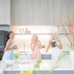 And don't miss it for music lovers because the living room here has speakers and microphones for us to sing karaoke and compete with the gang. Perfect for a full relaxation that meets all lifestyles, with a butler to take care of you throughout your stay. There is also a breakfast service served to the villa for your convenience, including private parking with an EV Charger. This beautiful and complete, you must come and check in, girls!