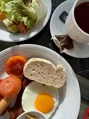 Breakfast is served from 06.30 - 10.30. Just tell them your room number and you can go in and eat. There are many types of food to choose from, both Thai and Western, such as noodles, rice soup, congee, Chinese crullers, or American breakfast. There are a lot of things to choose from. After finishing the main course, there are also many desserts to choose from, such as sticky rice with mango or croissants. I must say that it's great.
