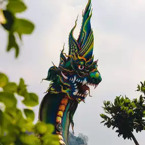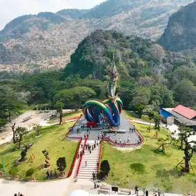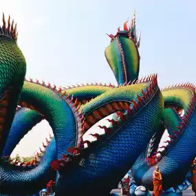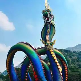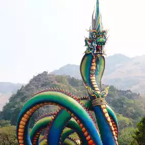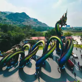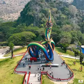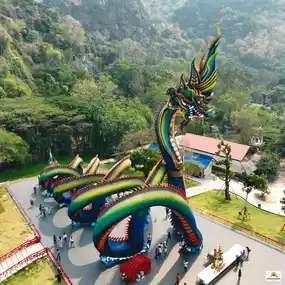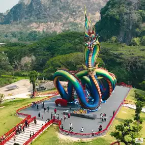 There is a large Naga statue named Phraya Si Phetkhiri Mahamuni Sri Suthonakraj, which is the largest and longest Naga statue in Thailand. It is 227 meters long and has 9 holes. It is nilpal or green like the wings of a beetle.