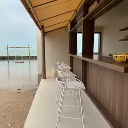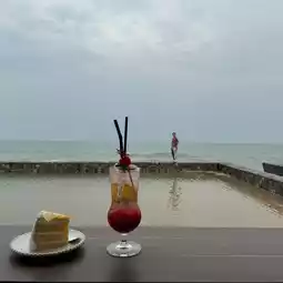 Continuing to please cafe lovers with Tumlay Cafe & Bar, another popular cafe in Cha-am. The shop is located near the Away by a Day project. It is a small cafe that is presented in the form of a beach bar. It is decorated in a minimalist style, with a white theme. It comes with a signature photo corner such as a large square glass corner that can see the sea view. When taking pictures, it will look like a picture in a frame. In terms of the food menu, they have a full range of drinks and food. In the evening, it opens as a chic bar where you can sit and relax for a long time.