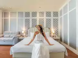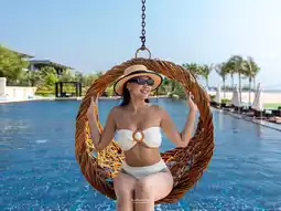 🛏️ The room we stayed in was a Premier room, beautifully designed in white tones. The room was very spacious, with a balcony to sit and enjoy the sea view while staying. As for the photo spots, from the beautifully designed lobby, the panoramic sea view swimming pool, to the beach, there are photo spots set up for you to walk and take photos from every angle.