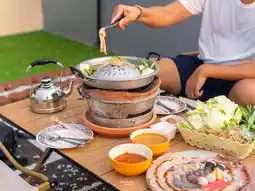 Here, they have complete facilities. There is a swimming pool, a living room, an activity corner, a party corner, a relaxation corner, a work corner, and a corner to sit and eat grilled pork. In the evening, order grilled pork to eat while watching the sunset. The atmosphere is very good.