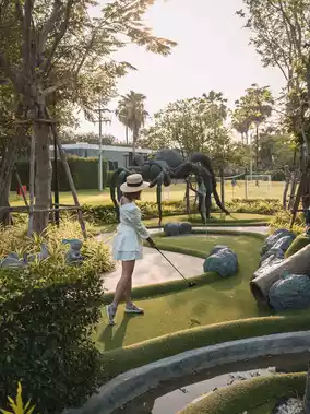 20 holes, tennis court, basketball, ping pong, pickleball, cycling. You won't be lonely sleeping here!!