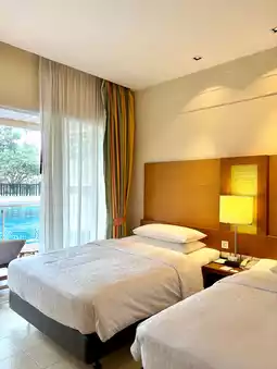 ✨We stayed in a Lagoon access twin room, a 49 sq m room. The double bed is soft and comfortable. There is a large sofa to sit and relax in the room. The balcony is next to the swimming pool. You can play in the water from the balcony of the room.