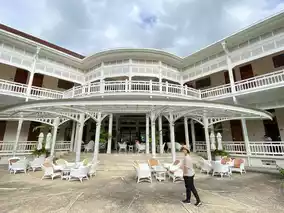 An old resort that has been with Hua Hin for a long time, it has been open for service for many years but still maintains an impeccable atmosphere and service. The renovated rooms are comfortable with spacious balconies. The beautiful garden is well-maintained with topiary in various animal shapes. The staff provide excellent service that impresses from the moment you step into the resort. Surrounding the hotel are numerous restaurants and cafes, as it is located in the heart of Hua Hin. You can walk to the bustling night market and the famous sticky rice with mango shop. The only downside is the limited parking, which may be full during long holidays or festivals.